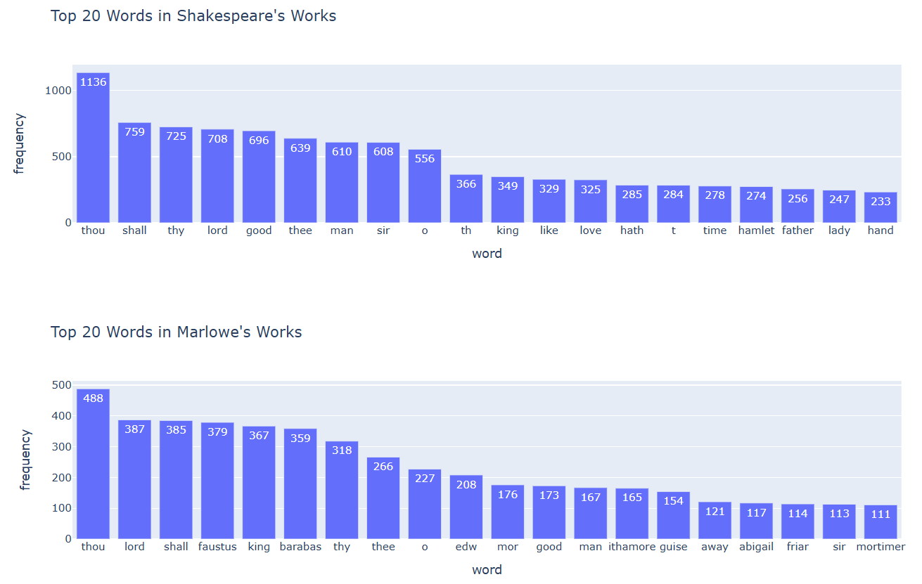 We’ll explore which words were most frequently used in nine of Shakespeare’s plays and four of Marlowe’s, all included in our dataset. This analysis will help us gain insight into the themes and rhetoric of some of the most influential English plays written in 16th-century England.