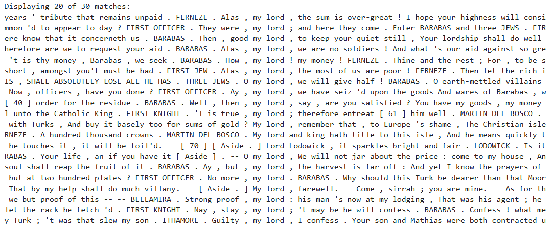 kwic_analyze (marlowe_texts['jew_of_malta'], "lord", width=120, lines= 20)